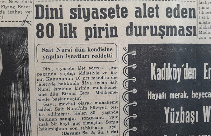 Hayatı hapis, sürgün ve mahkemelerde geçen Said Nursi, 1952 yılında mahkeme çıkışı etrafındaki askerler ve büyük kalabalığa rağmen dimdik duruşuyla dikkat çekiyor.