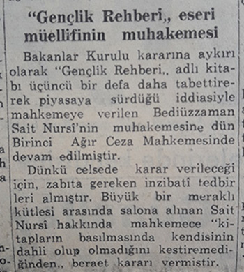 BEDİÜZZAMAN'IN GENÇLİK REHBERİ MAHKEMESİ VE AVUKATI