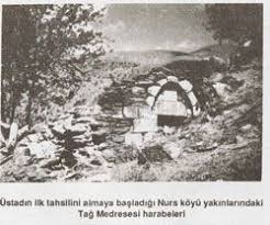 Bediüzzaman'ın ilk eğitim aldığı Nurs köyünün 4 kilometre yukarısında Tağ Medresesinin 1970'lerde harabe haldeki kalıntılarıdır.