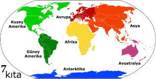 · hem Avrupa, Afrika, Okyanusya, iki Asya, iki Amerika namlarıyla mâruf yedi kıt'ası,
