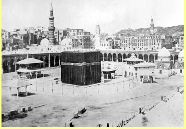 Mekke Kabe 1889 yılında yukarıdaki gibiydi, Üste görülen Osmanlı Döneminden kalan tarihi Kale de genişletme kapsamında her ne kadar Türkiye’nin tepkilerine rağmen yıkıldı.